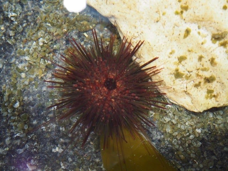 一枚岩に人工的に掘った溝に海流が流れこむことで栄養たっぷりのウニの主食である海藻が育ちます。放流開始から3年目のものがここで育つことで、身がぎっしり詰まったおいしいウニになります。