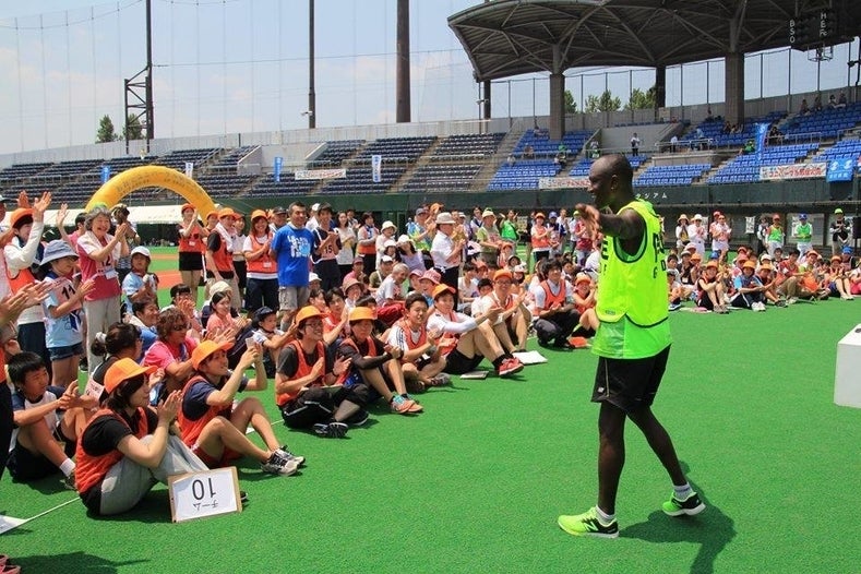 ▲開会式のゲスト紹介。毎年多くのゲストが参加し、アトラクションタイムには参加者とともに楽しいひと時を過ごします。昨年はオリンピックメダリスト、パラリンピックメダリスト、プロレスラー、ボディビルダー、プロ野球OB、歌手の皆さんに特別参加していただきました。