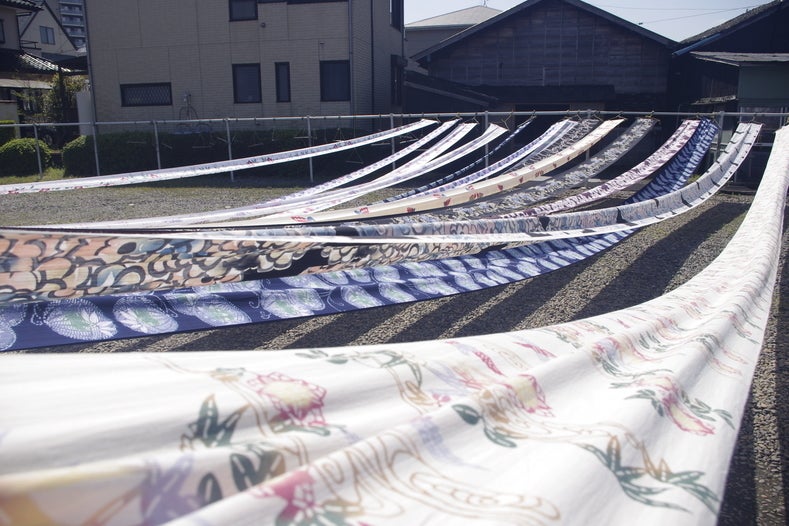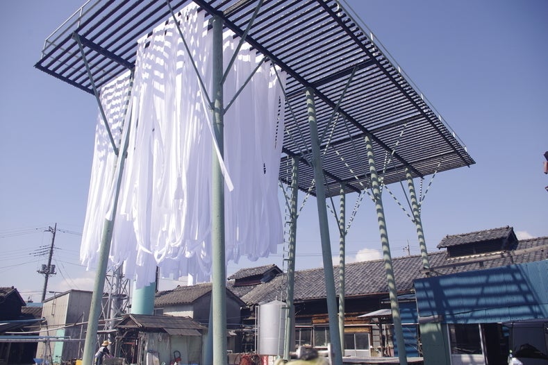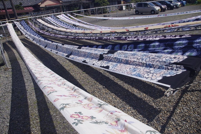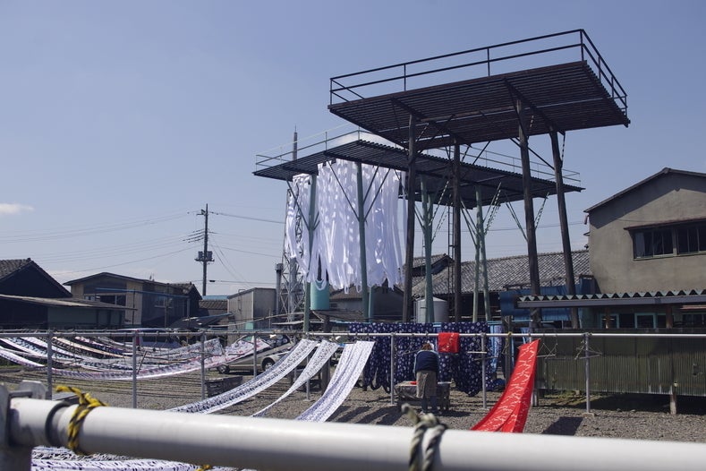 [6]染め上がった生地を天日干しする。