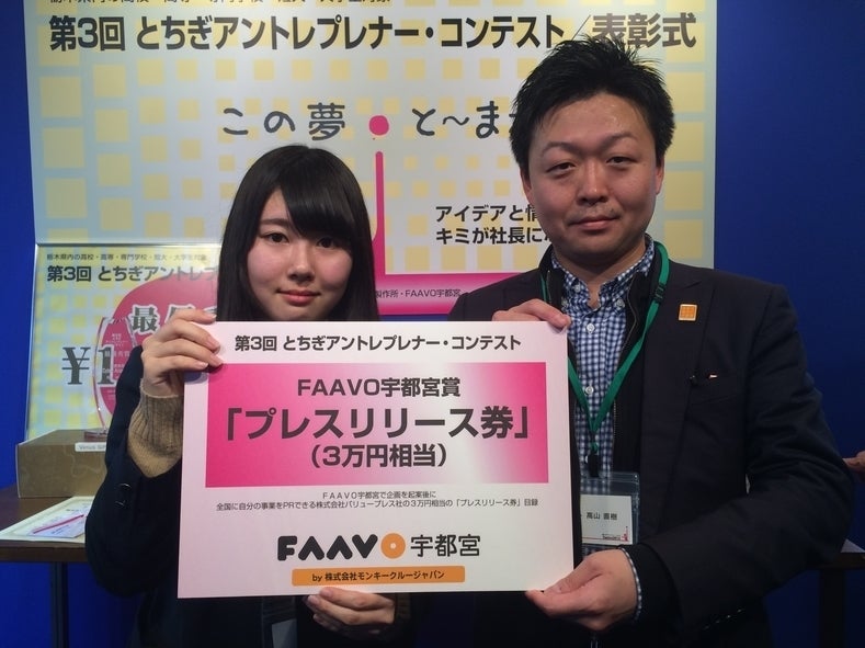 ▲とちぎアントレプレナー・コンテストでは、FAAVO宇都宮賞を受賞しました。