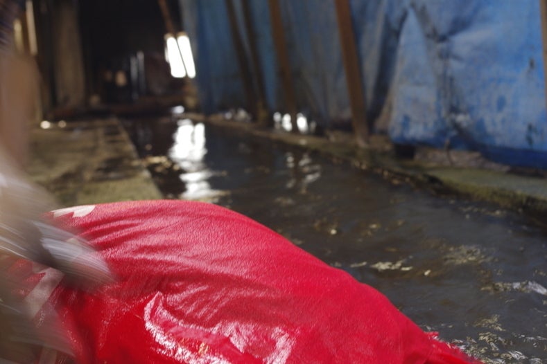 [5]染め上がった生地を洗う