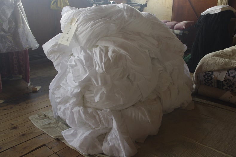 干していた生地を取り込んで、巻きます。