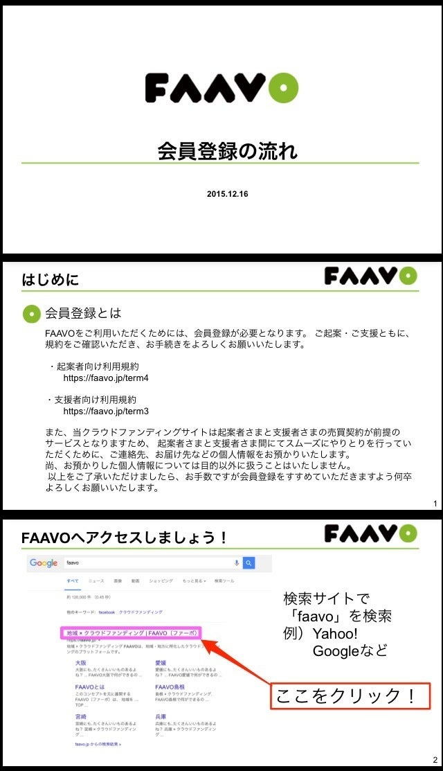 2016/06/20 10:42いつもご支援、ありがとうございます!! 今回は応援して下さっている皆様へ、支援手順を分かりやすくお伝え致します。 ご参考になれば幸いです! 大まかな支援手順は、 1【FAAVO会員登録】 FacebookアカウントまたはTwitterアカウントまたはメールアドレスから登録↓ユーザーIDなどを指定↓指定したアドレスに登録完了メール 2【支援方法】 FAAVOログイン後、希望する支援を選択↓個人情報入力(お届け先など)↓決済方法選択↓決済手続き の2つの流れです(^^) では順を追って詳細を説明致します! 1【FAAVO会員登録】 2【支援方法】 クレジットカード決済 Paidy決済(コンビニ振込) 以上になります! 皆さまのご支援、よろしくお願いします!! もっと見る