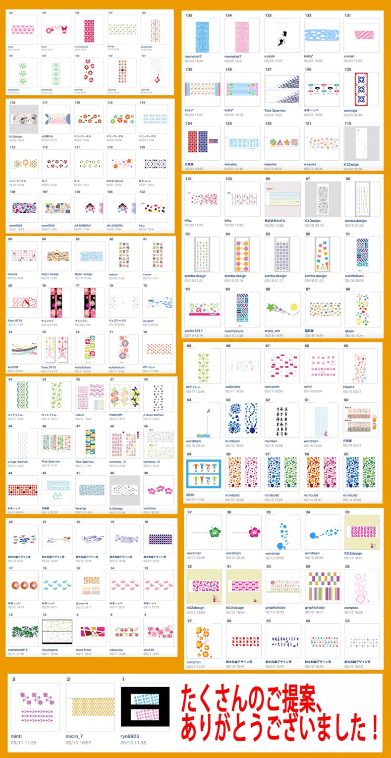 5月10日〜23日の期間に、クラウドワークスにてデザインを募集した結果、ご提案総数150件という、当初の予想を大幅に超える件数をご提案いただきました。