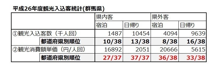要するに、群馬県には観光客は来ているものの、その人たちが県内に落としてくれる金額は他県と比較すると極めて少ないのです。