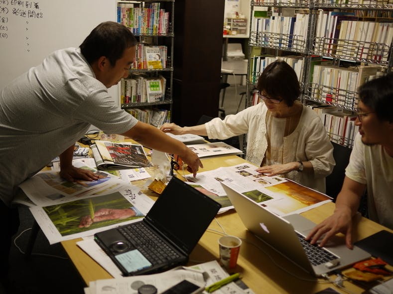 編集メンバー5人全員が本業をやりながらの同時進行につき、集まって打合せする時間はなく、実際には個々に仕事を分担し、ネットワーク上で共有することがほとんどです。