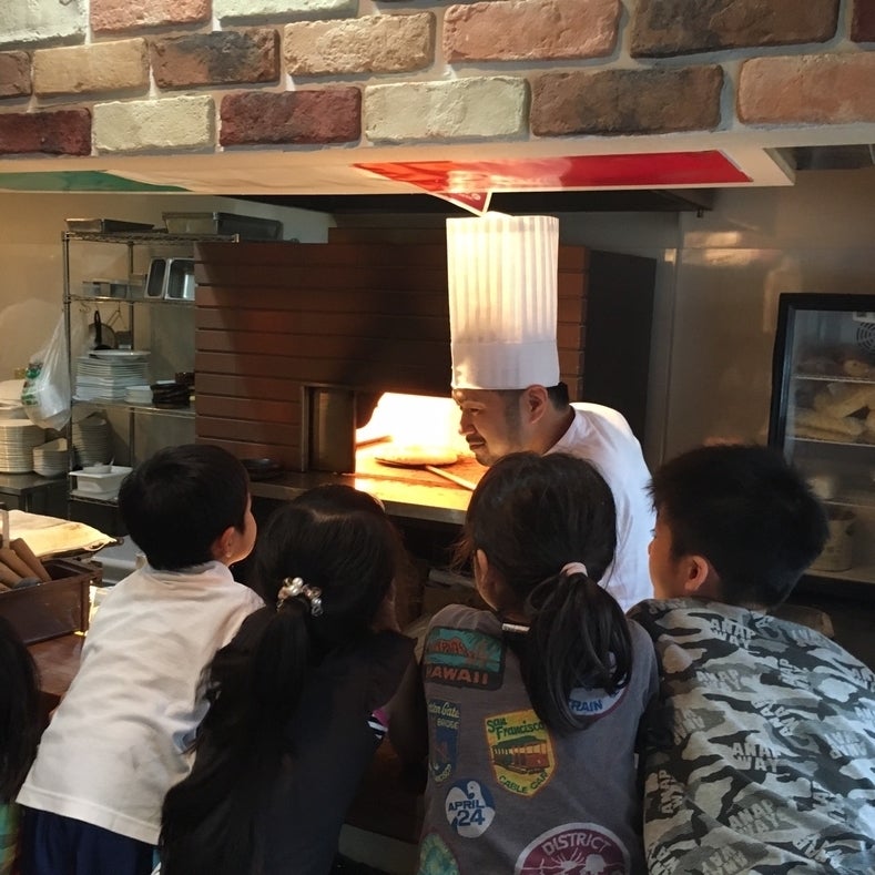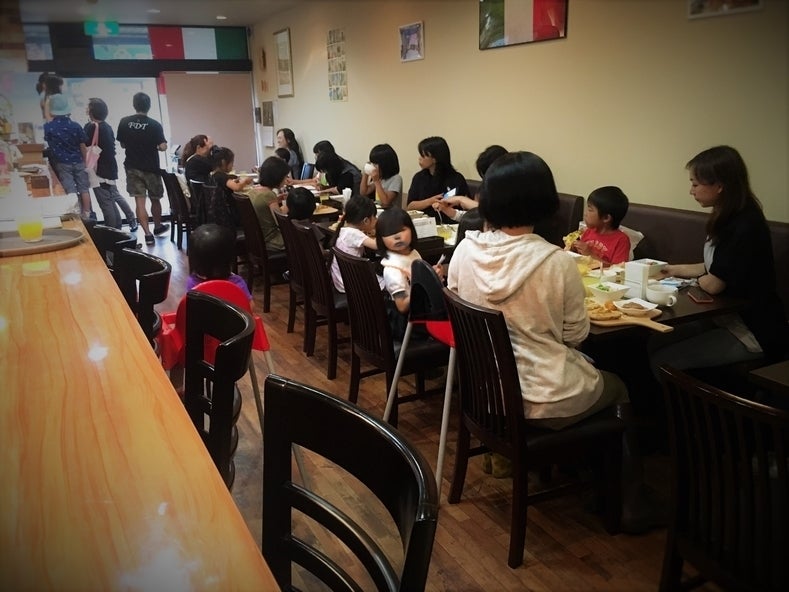 一緒に子供と宿題したり、お母さん同士で話したり、店には石窯があるのでピザを焼いているところを間近で見てもらったり、賑わっています。みんなで食べるご飯はやっぱり楽しいものです。