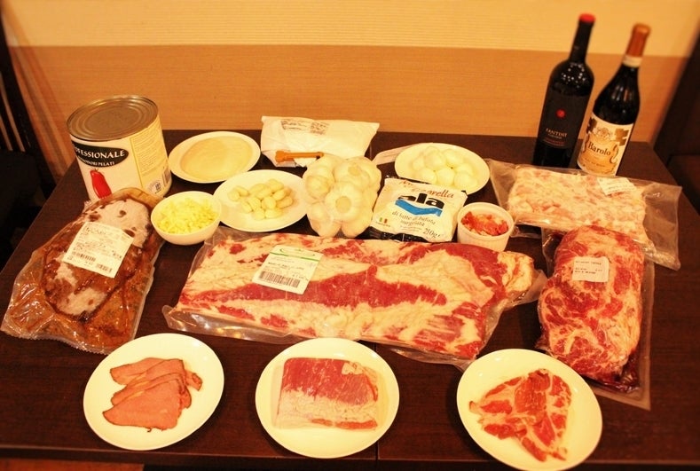 このほかにも乾燥ポルチーニ茸(日本の松茸に位置します)とイタリア米のセットやパルマ産プロシュート山盛り200g(店舗で原木をスライスしてお届けします)など15種類ご用意しております。ポークは1kg以上と表記していますが実際は1.5kg前後でお届けいたします。