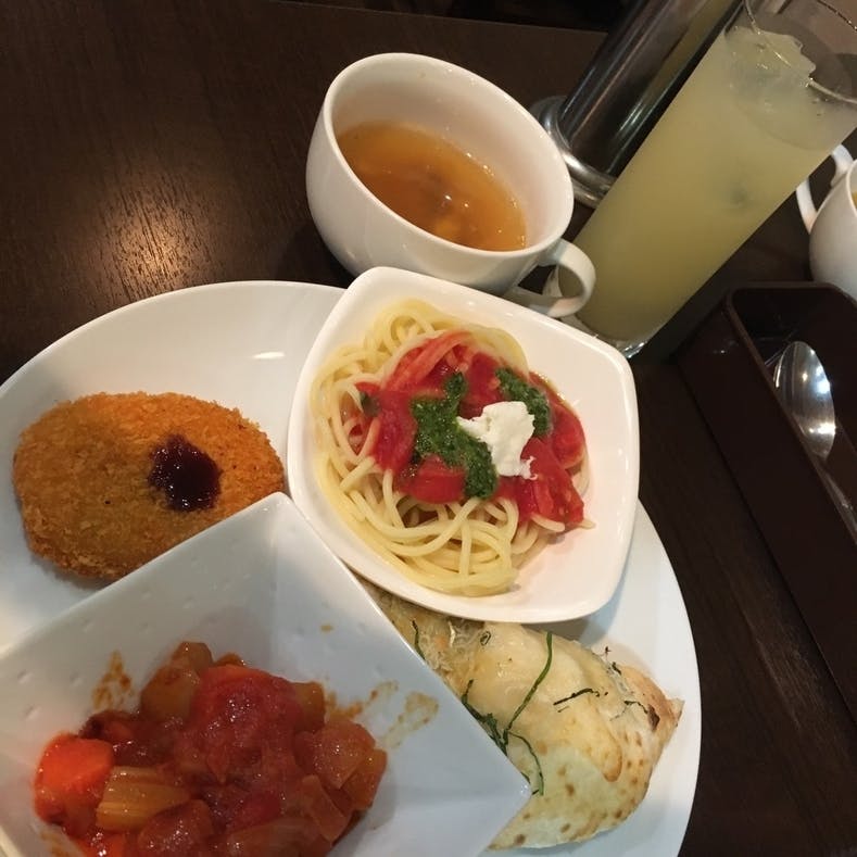 チキンのカチャトラは、たまねぎ・人参・ズッキーニ・チキンを素揚げして、ブロードで煮て、トマトソース・塩・こしょう・セージ・ローリエで煮立たせ、仕上げにペコリーノロマーノチーズで味をまろやかに仕上げました。今日のピッツァはしらすのピッツァ。トッピングに大葉を散らしました。ちょっと大人の味です。スープは玉ねぎ・人参・コーン・グリンピース・エリンギ・舞茸・しめじのコンソメスープ、仕上げに卵を散らしました。野菜コロッケ・サラダ・オレンジジュースを付けました。ピザ生地は3日間寝かせて作っているのでもちもちです!!