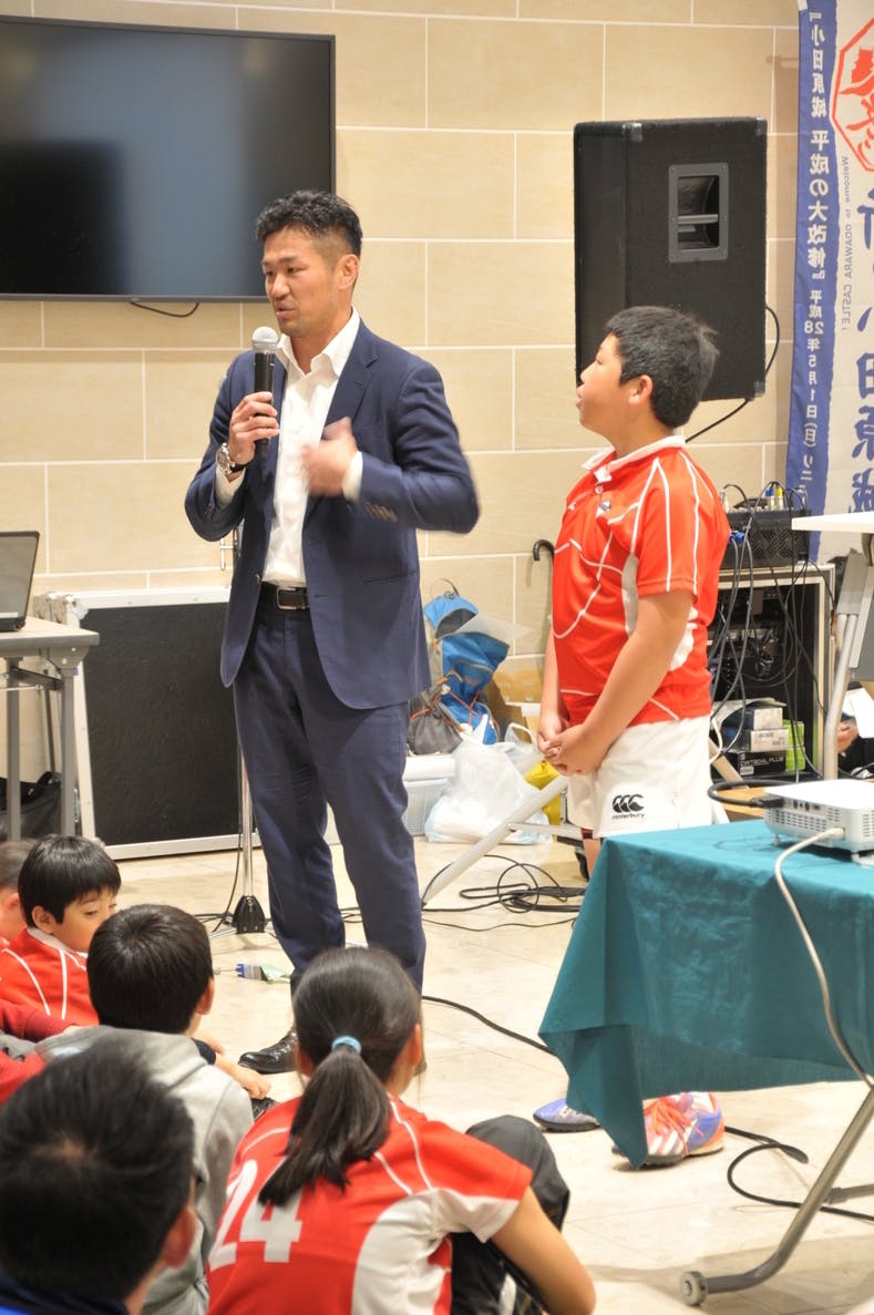 ラグビー体験会には小田原で昨年よりスタートしたラグビースクールの子供をはじめ多く参加、その後、元ラグビー日本代表キャプテンである廣瀬俊朗氏による講演を実施、日本代表が大活躍した2015ワールドカップの裏側やラグビーの魅力など大変面白く語っていただきました。いよいよラグビーのまち小田原のキックオフです♪