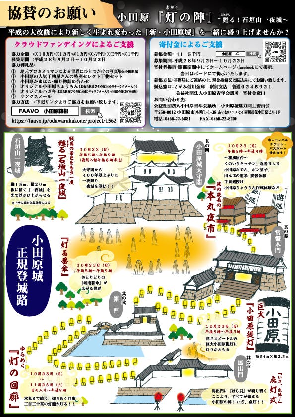 2016/09/15 09:14皆様へのご連絡 【 小田原『灯の陣』 ~甦る!石垣山一夜城~ 】 のチラシが出来上がりました! ↓チラシ裏面は、こちら。 ) もっと見る