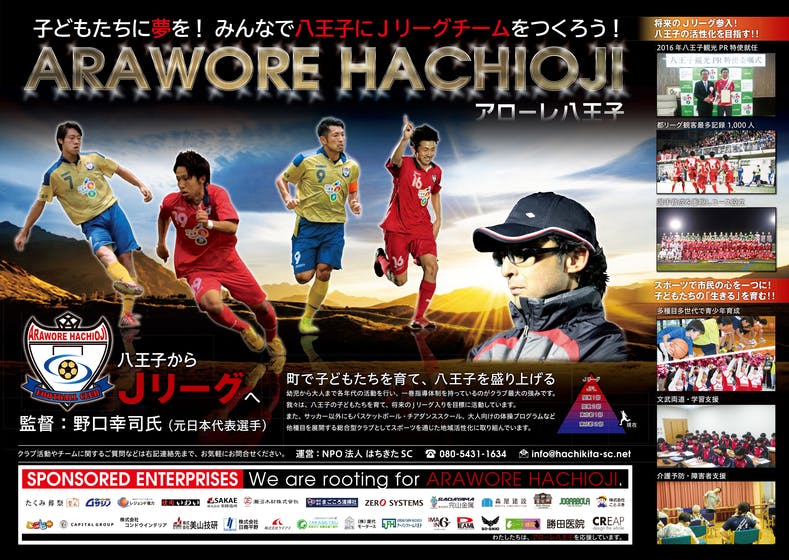 みなさん、こんにちは!八王子からJリーグを目指すアローレ八王子(運営:NPO法人はちきたSC)代表理事の紙本諭です。
