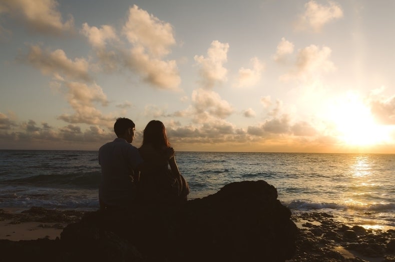 (マン活会場を飛び出して海辺でマンガについて語り合う男女 ※イメージです)