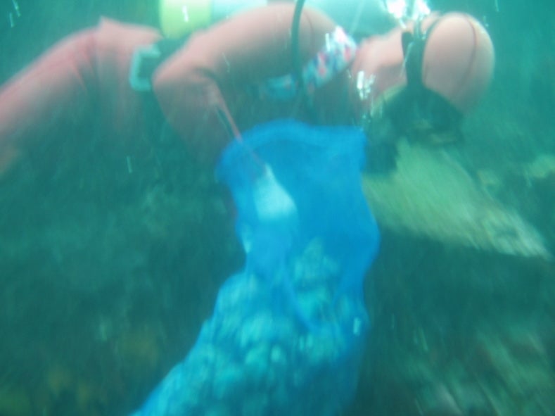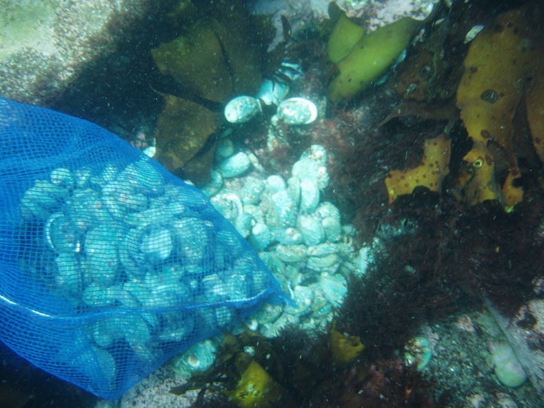 一昔前の稚貝の放流は、船の上から海面に向けて撒いていたそうですが、現代の稚貝の放流は、海の中に潜り、稚貝が根付くことができる場所に放流します。