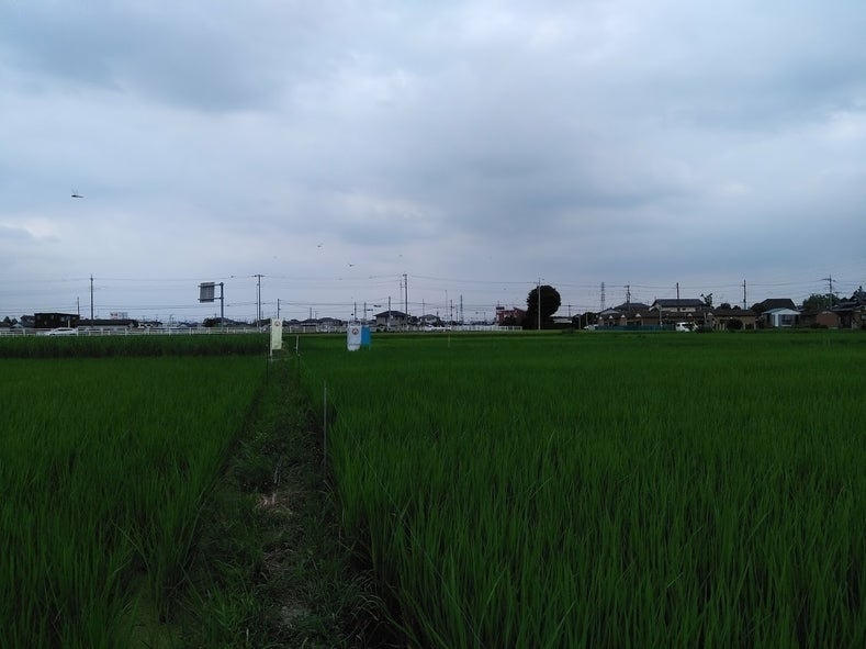 また、田んぼの上空にたくさんのとんばが乱舞していました。昔の田園風景の再現です。写真にはトンボがうまく映っていませんが、左側にかろうじて映っています(撮影に夢中でトンボの種類を確認するのを怠りました)。
