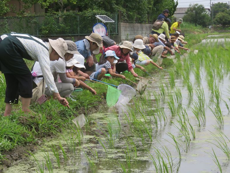 6月24日(土)かわごえ里山イニシアチブとかわごえ環境ネットとの共催で「田んぼの生きもの調査(動物編)」を行いました。大勢の子供たちを含め総勢75名が参加しました。