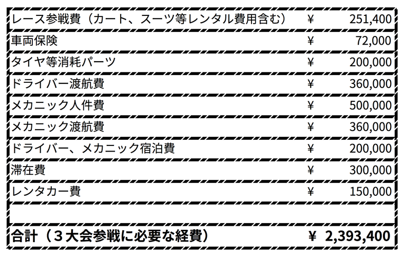 ※2月末日(クラウドファンド公開後)にアカデミートロフィー9月ドイツ開催が7月フランス開催に変更になりました。本年出場予定だった全日本カート選手権大会(東)のレースとスケジュールが重なってしまう為、急遽全日本カート選手権(西)に出場することになりました。