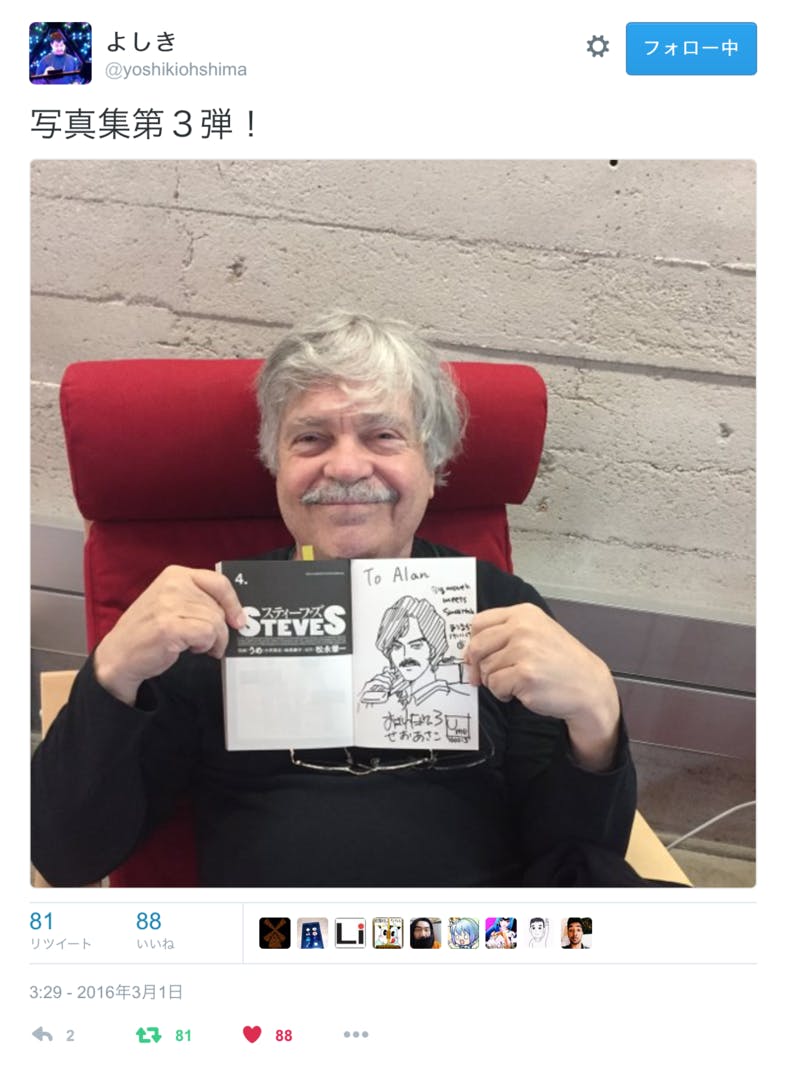 ウォズには、2015年末に来日した際に、手紙をつけて、人づてに単行本を渡してもらいました。縁あってアラン・ケイさんをはじめ、ダン・インガルスさんなど当時のPARCの方々にもサイン本を受け取っていただきました。