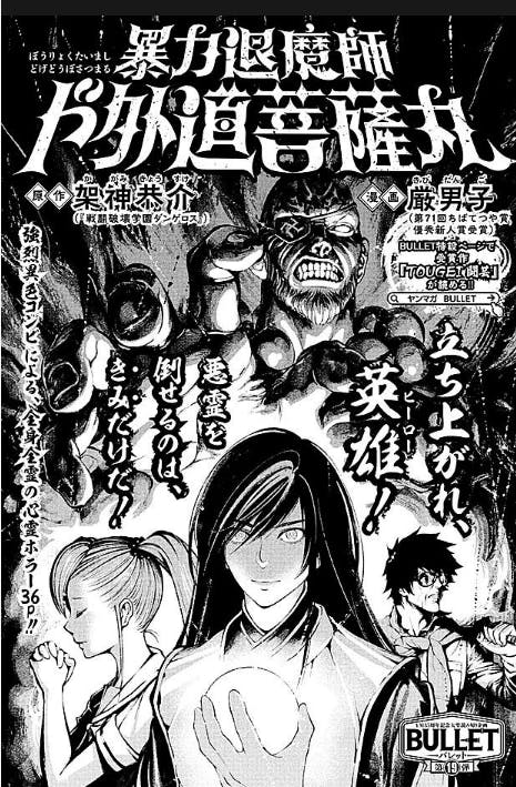 厳先生とはヤングマガジンの読切企画にてお会いしまして、僕の原作『暴力退魔師ド外道菩薩丸』にて作画を担当して頂きました。