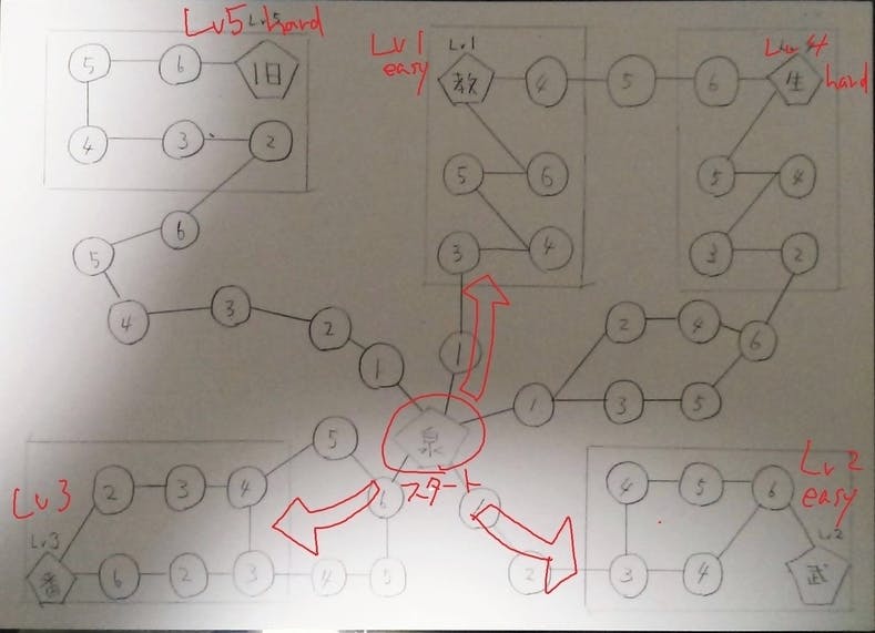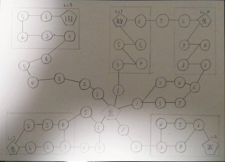 ・番長小屋へ向かうルートだけやや特殊であり、進行方向に向かって6→5→4と降順になっています。これにより出遅れた人も番長小屋へ向けて進んでいけば、連続してアイテムやLv2魔人を獲得でき短期成長できるようになります。