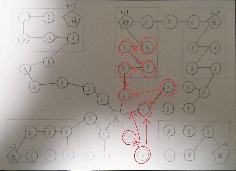 戦闘システム:勝ち抜き戦。Lvの数だけ6面ダイスをお互いに振って、出た目の最大値が大きい方が勝ち。 ・Lv1 あげは 『メルヘン・メン=ヘル』 死亡時、対戦相手も死亡する。その後、このカードをゲームから除外する 下方修正を入れた(除外の下り)が、相変わらず強すぎるのでLv2にすべきか? これを引いた瞬間にボス1体確殺が決まるので、初手の手札に入っていると有利すぎる。原作通り、味方にも被害が及ぶ形も考えたが、やや処理が複雑になるのと、結局ボスを確殺できるのは変わらないので……。 ・Lv1 恨み崎Death子 『自殺ブリミナル』 このキャラの死亡時、6面ダイスを振る。3以上で成功、相手がなら相手は死亡する) 現状、あげはの下位互換。Death子を強くするか、もしくはあげはをLv2にしてしまうか。 ・Lv1 xx 『インターネット殺人事件』 自分以外のプレイヤーがダイスで1を2つ以上出した時に、そのダイスの結果を解決後、ダイスを振ったカードをゲームから除外する テストプレイで猛威をふるった。他プレイヤーがボスと戦っている最中に、横槍でボスをゲームから除外したりする(他プレイヤーの戦力増強阻害)。Lv1カードのくせにこいつをキーカードとしてシナジーが組める程の存在感。 Lv3鏡子 『ぴちぴちビッチ』 対戦相手のダイス目を攻撃ダイス、能力ダイスかかわらず1つ-1する。鏡子の攻撃ダイス目は3で固定される。 xxとシナジーがあり二人が組むと、xxの能力がバンバン決まる。鏡子本人の直接戦闘能力は(原作から考えると)ちょっと弱めか? ・Lv2友釣香魚 『災玉』 このカードの勝利時、敵味方のパーティー全てのが死亡する 転校生・両性院乙女(能力にが関係する場合、都合の良いように性別を一時変更できる(敵も可))とのシナジーが分かりやすく強すぎて、この2枚を揃えてると、友釣が一回勝つだけで相手が全滅する。ゆえに、決戦時にはみんなから集中攻撃でフルボッコされる。 ・Lv1白金虹羽 『万刻白嵐界』 このカードの直前のパーティーメンバーの通常攻撃ダイスの目を+1する ド安定で強い。Lv1のくせに決戦時にも採用される勢いで強い。地味に鏡子とのシナジーもある。 ・L2アーニー 『アポロ11』 通常攻撃前に6面ダイスを1つ振っても良い。5以上が出ると対戦相手のカードをゲームから除外する。 めちゃくちゃ強い。Lv2だと最強クラスで強い。手札にしても強いがNPCで出てきた時がヤバイ。対面しただけで33%で無条件で手札が1枚消えてなくなる。しかも毎回使ってくるので、運が悪いと2枚も3枚も消し飛ばされる。まあ原作(『ダンゲロス1969』)でも強いからいいのかな……。 ・Lv3 池松叢雲 『統一躯』 このカードはダイスを減らす能力、ダイス目をマイナスする能力、ダイスを振り直させる能力の影響を受けない 一方で、原作(『ダンゲロス1969』)では最強の池松さんが弱い。Lv3魔人の中ではかなり弱い部類なので何とかしたい。能力的にもユキミ(相手の能力無効化)の下位互換だし……。 ・Lv3 小竹真央 『フルキューブ』 このカードの死亡時、6面ダイスを3つ振る。6が出た数だけ、自分と相手のパーティーを先頭から順に死亡させる 3つ振っても意外と決まる確率が低いので、あんまりヒリヒリ感がない。原作でのヤバさを考えるともっと強烈な能力にしたい。「5以上が出た数だけ」くらいのインパクトがあっても良い気がする。 ・Lv3 邪賢王ヒロシマ 『仁義なき戦い』 このカードが手札の最後の一枚の時、ダイス目+2 能力が決まるとメチャクチャ強い。平気で2~3連勝する。それゆえに決戦時ではサカナやムーの順番入れ替え能力で真っ先に狙われる。ボスでヒロシマが単騎で出てくると確実に能力が決まるため、プレイヤー全員が一気に絶望感を覚える。 * 以上、現段階でのキャラ雑感でした。今後ともテストプレイを重ねていきます。Lv1のキャラでも何かしら使いようはある感じで調整していきます。まだの方はぜひご支援よろしくお願いします。(5000円コースは実質ゲームの予約のようなものですのでぜひ)