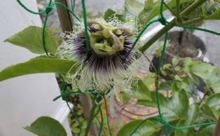 以前、パッションフルーツの苗を店頭横においていただき、見てみるとなんと!きれいに花が咲いていました