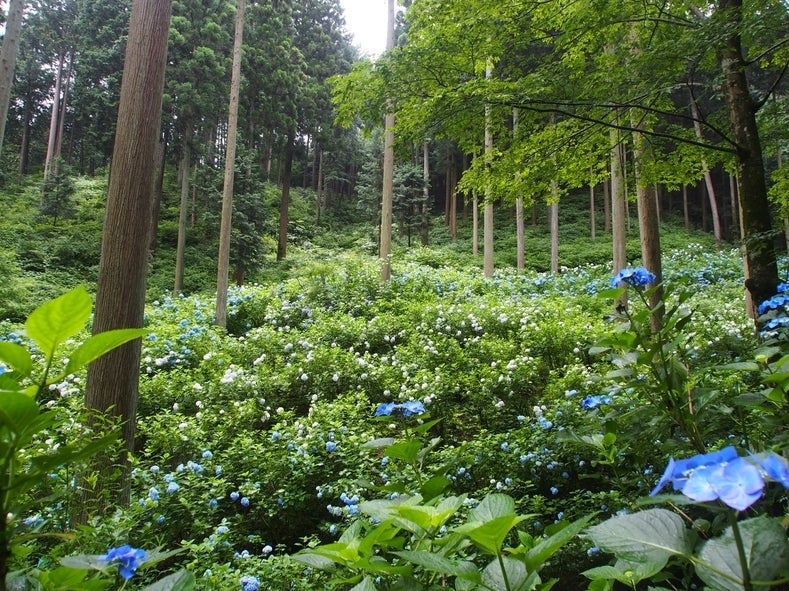 山の中を約10.000株のあじさいが咲き誇り、