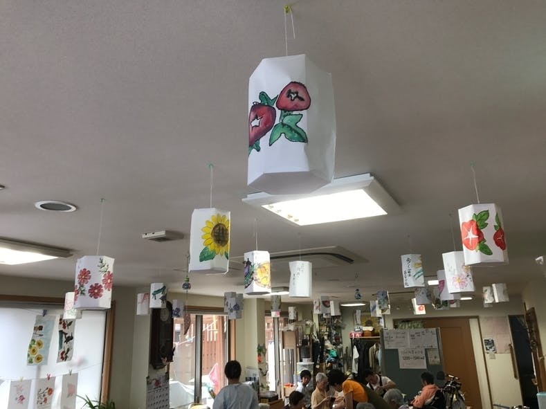 ちなみに天井にさがっているのは皆さん手作りの灯篭です。