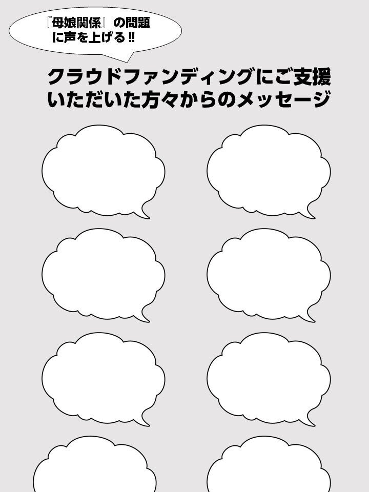 マンガと一緒に、多くの方々のメッセージを掲載して、「『母娘関係』の問題に悩んでいるのはあなただけじゃない」ということを悩んでいる方々に届けます。