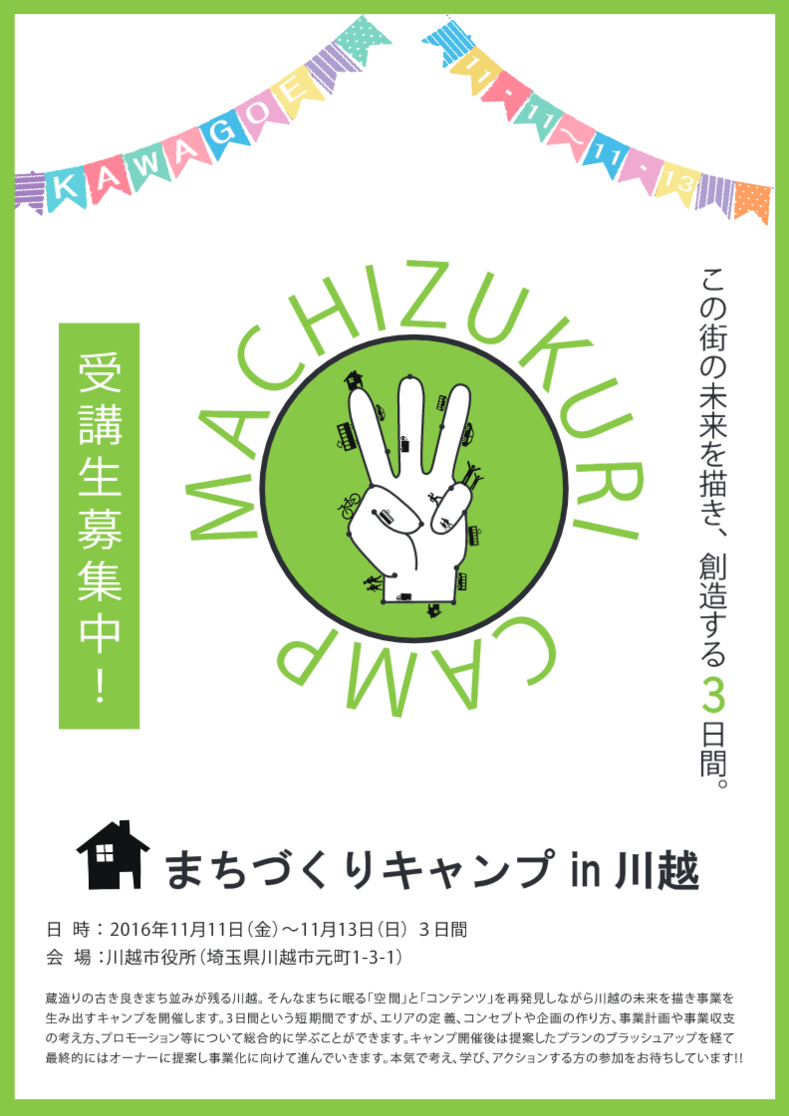 ・・・その「いつか」は意外と早くやってきたのです。昨年、川越市主催で行われたエリアリノベーション事業「まちづくりキャンプ」をきっかけに、仲間と共に会社を興し、この課題に正面から向き合うことになりました。