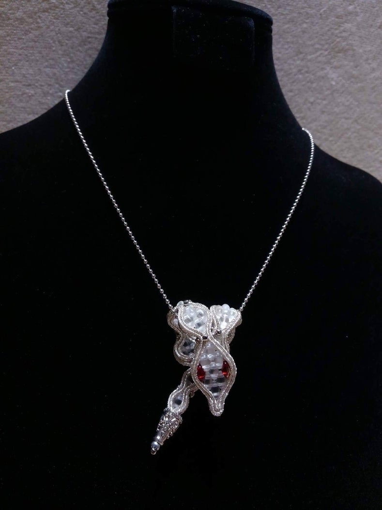 劇中と同じ白蛇のアクセサリーも ソウタシエ作家・はやしだゆみさんから 送られてきています! こちらは、ネックレスにもできるそうです。 15000円コースの方・5万円フルコースの方にお届けします! とても素敵ですー!!