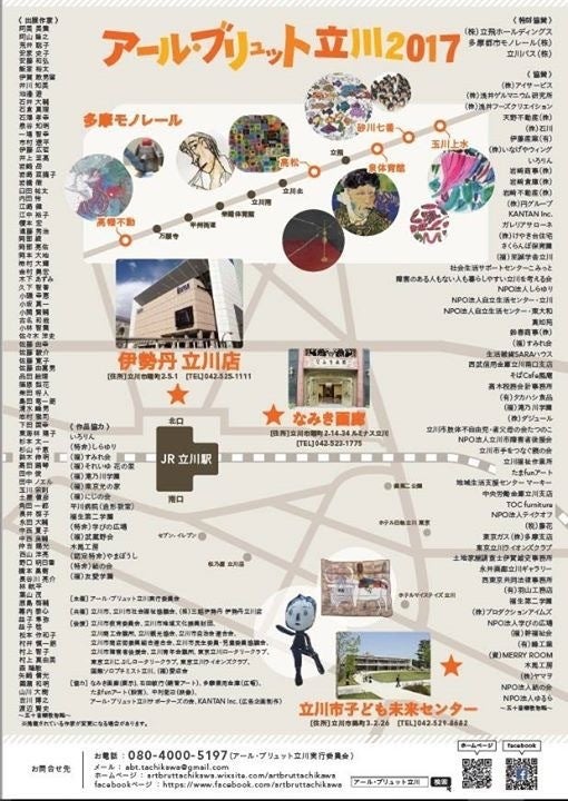 アール・ブリュット立川2017先日ご紹介したフライヤー(A4サイズのチラシ)ですが、あまりに好評で、全部配布し、事務局にもなくなってしまいました‼️まだ9月なのにフライヤーがないのはちょっと困るので、ただいま増刷しております。ネットが使える方、PCやスマホをお持ちの方にはぜひ、こちらのFacebookをご紹介くださいませ。 「紙のフライヤーが欲しいんだけど、どこに置いてあるの?」「お店にポスターを貼りたいんだけど」という方はぜひ事務局までメールでお問い合わせください。メール: abt.tachikawa@gmail.com
