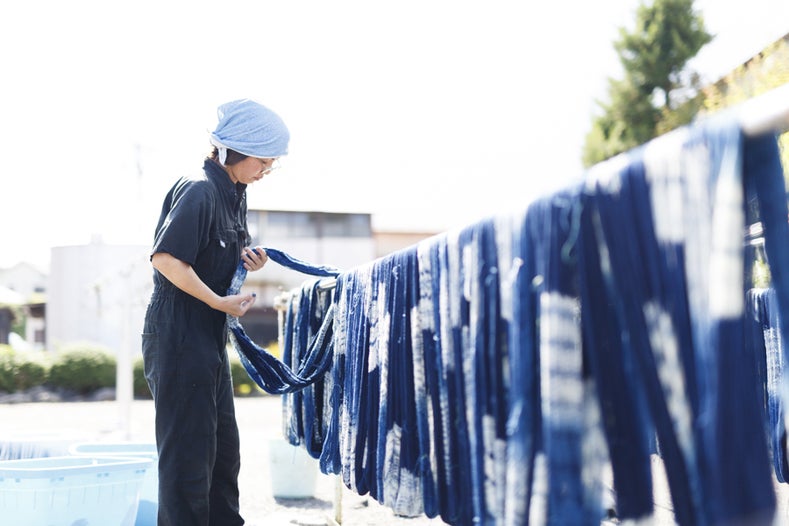織り物の街として歴史の深い青梅の地で、江戸時代から続く「天然藍灰汁醗酵建」という化学薬品を一切使わない伝統的な染色方法で、肌触りの良い手紡ぎの綿素材を自然界の原料のみで染めている村田染工株式会社。