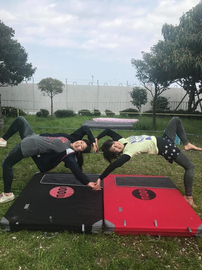 スラックラインの他にヨガ、ピラティス、ストレッチ、パルクール、トランポリンができるように準備しています。
