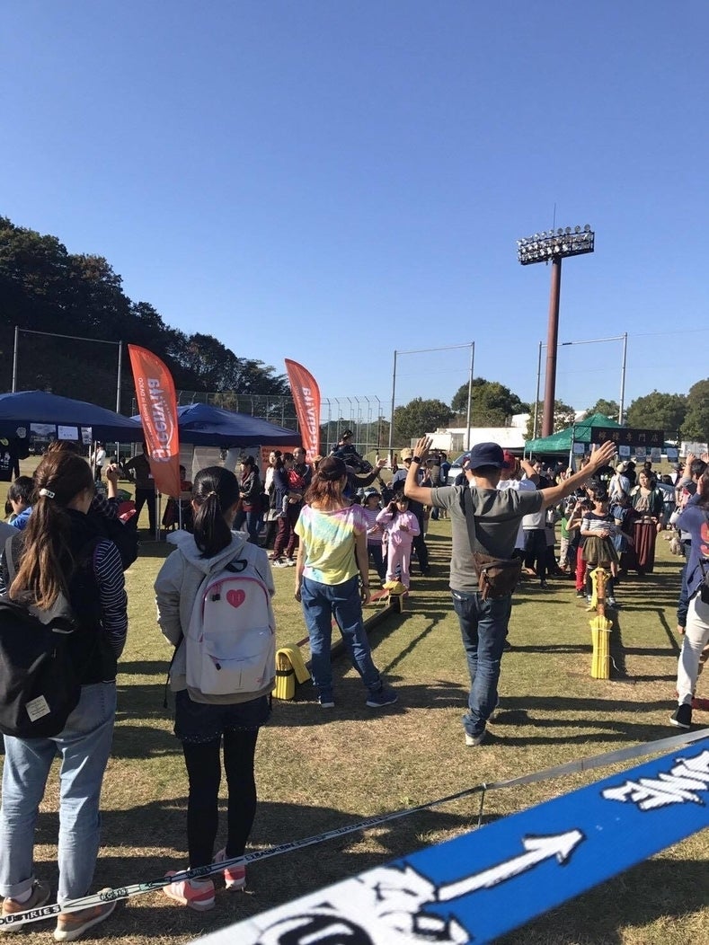 福島県羽鳥湖高原で3日間体験会を開催(体験者200人)皮切りに、那珂市ひまわりフェスティバル(体験者300人)、ガヤガヤかみすが(体験者250人)、日立市PLACE2017(体験者300人)、日立市ぷらスポフェスタ2017、(体験者500人)いばらき県北外あそびフェス(体験者1500人!!)、その他スポーツクラブへの出張教室などを行いスラックラインの普及に努めてきました。お陰様で、どれも大好評をいただいています。