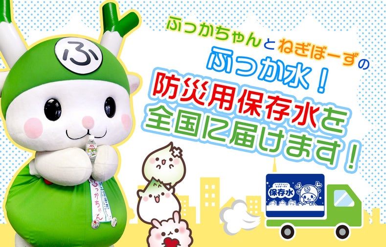 ふっかちゃんとねぎぼーずのふっか水!防災用保存水を全国に届けます!
