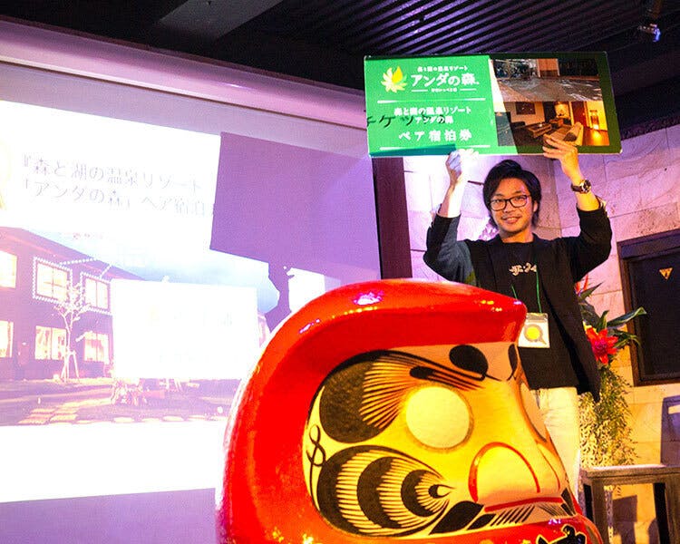 ルールは簡単で、交流の際に名刺交換をしていただき、一番多く名刺を集めた方に豪華賞品をプレゼントするというものです。