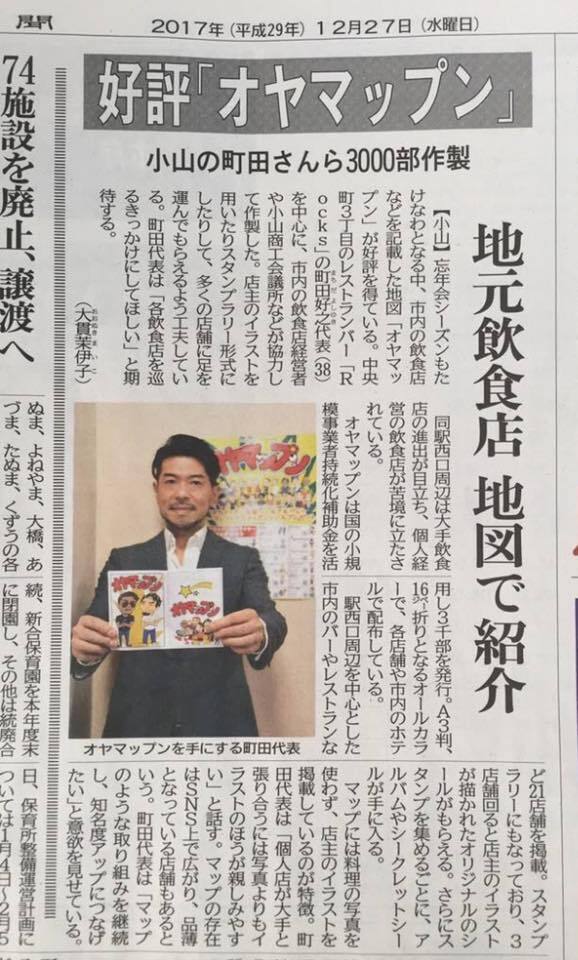 【下野新聞】駅前飲食ガイド「オヤマップン」好評 工夫満載、スタンプラリーや店主イラスト