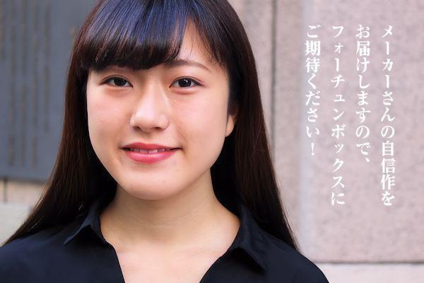 日本のどこかには、きっとあなたに出会うべき商品たちがたくさん眠っています。そんな商品が、あなたに届くきっかけを作るのが「フォーチュンボックス」です。私は「"選べない通販"フォーチュンボックス」を通じて、あなたとステキだけどマイナーな商品たちを”偶然の出会い”で結びつけたいと思います。微力なのはわかっていますが、少しずつチャレンジさせてほしいと思っています。
