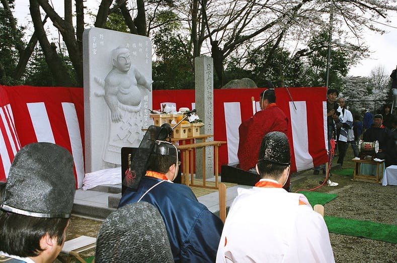 「初代横綱が明石志賀之助である」と顕彰し、蒲生神社において初代横綱明石志賀之助の石像を建立し子供達を集めて毎年4月に相撲大会を開催しています。