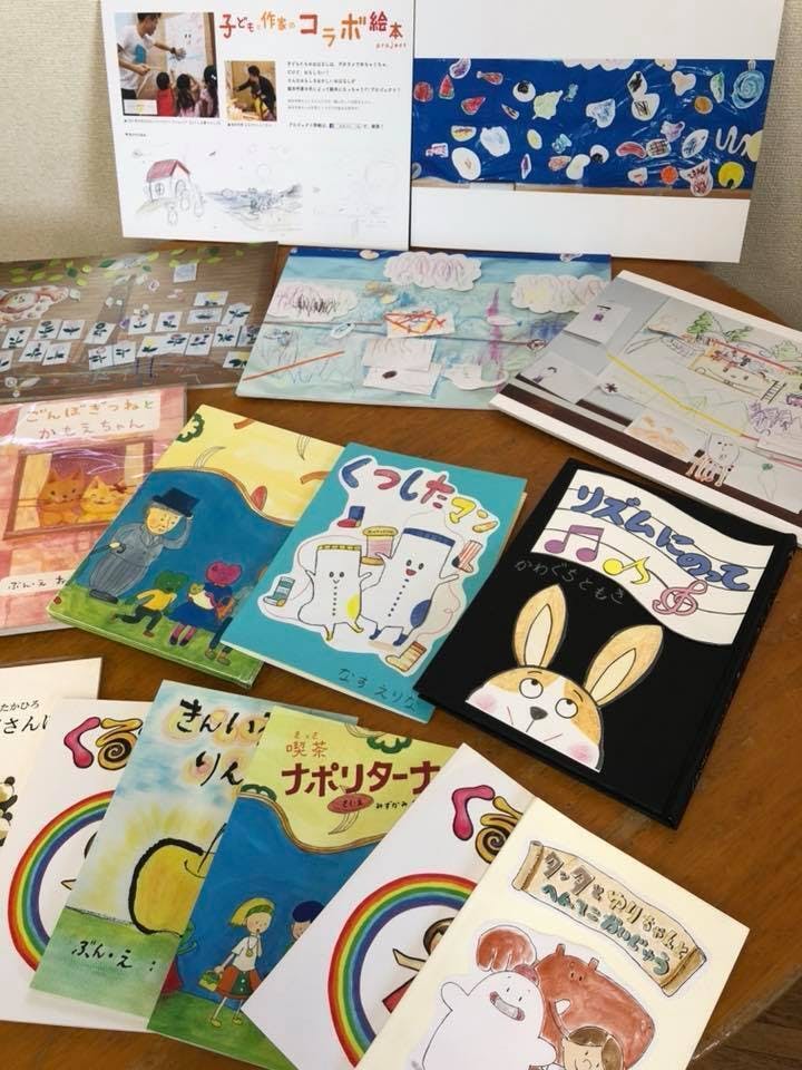 子どもと作家のコラボ絵本を展示します。