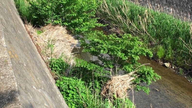 川床に木があると、雨後、水量が増え、水が引くと、木の枝やごみが引っかかる。