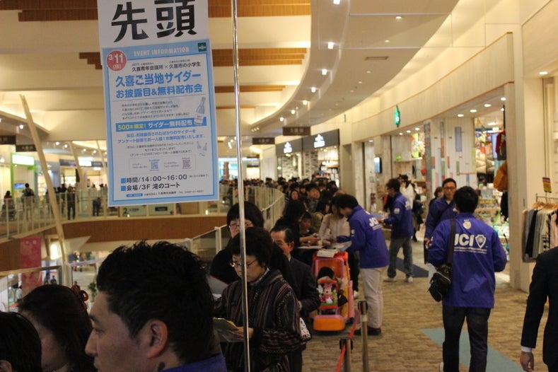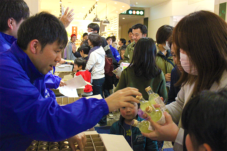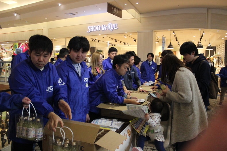お披露目式では、約1,000人の方に配布することができ、ご当地サイダーに対する興味を知ることができました。