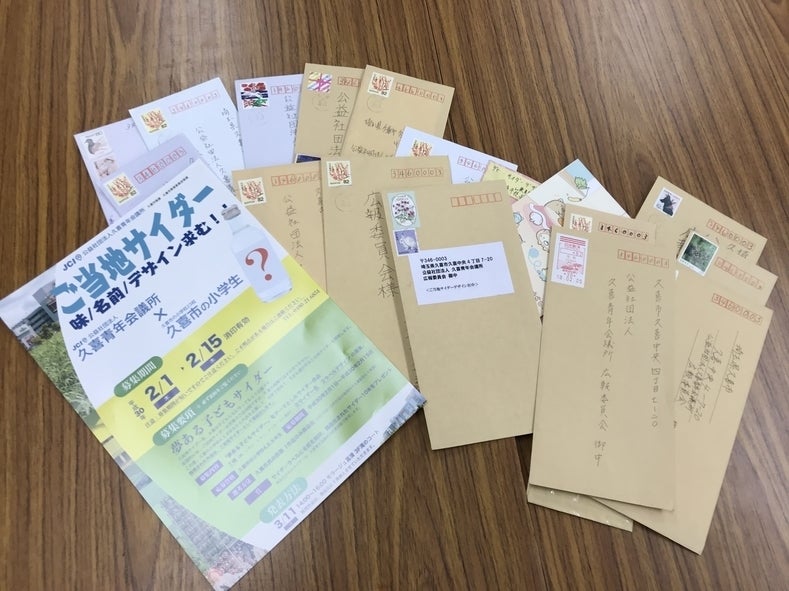久喜青年会議所主催「夢ある子供サイダー企画」で久喜市の子供達に、サイダーの味、名前、デザインを募集したところ、約300の作品の応募がありました。