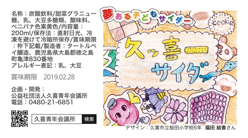 未来ある子供達が、久喜市をこれから形成しなくてはならないという意味を込めて、久喜市の子供達から、味、デザイン、サイダー名を決めていただきました。