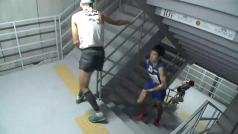 階段垂直マラソンで全員一斉スタートの場合、このスタートで半分くらい順位が決まるといっても過言ではありません。
