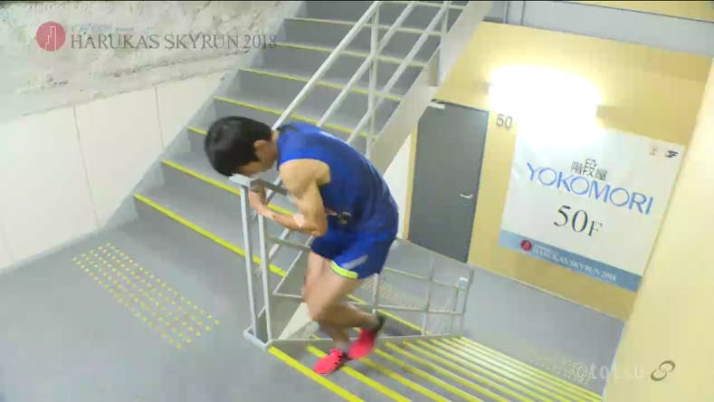 必死にペースを上げようとするものの、全く身体が言うことをききません(>_<)なんとか両手で必死に体を引き上げて進み、55階あたりで後ろを確認した時にはまだ姿は見えずぎりぎり粘れていると感じました。