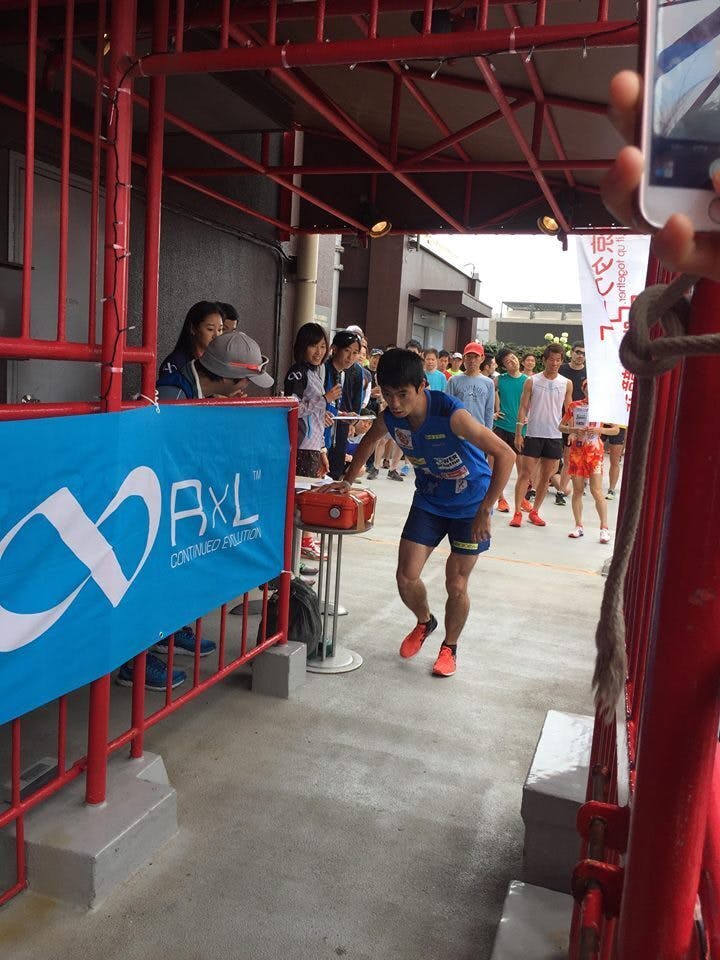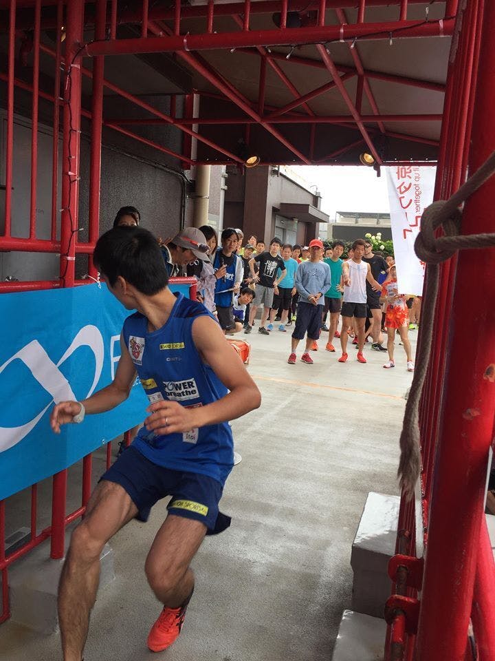 先月までの海外遠征のレースに比べるとおよそ5分の一程度の超ショートレースだったので若干ペース感覚に不安はありましたが、記録保持者、そして階段垂直マラソンの国内第一人者として絶対に負けるわけにはいかないレースでしたので、気合を入れてスタート!
