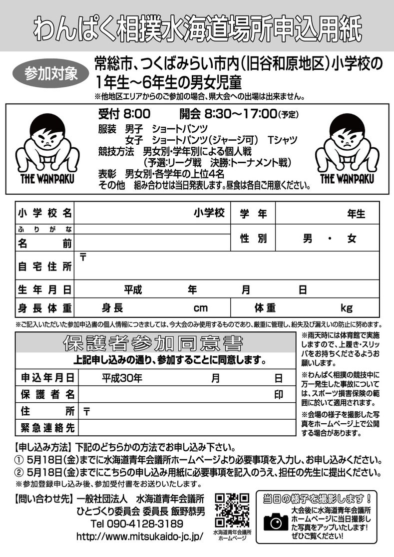 ※わんぱく相撲水海道場所は近隣の小学生1年生から6年生を対象とした大会です。