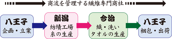 具体的には、素材の新規性をこころばせでは重要視しています。糸を発明するところからスタートすることがこころばせの重要なミッションです。今回のラミーコットン糸のタオルも世界初の試みです。